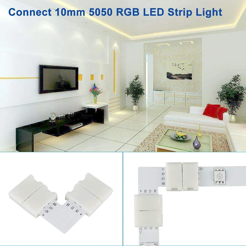 .Gallery of 1/5/10/Pcs 10mm 4 Pin L shape led rgb connector For connecting corner right angle 10mm 5050 2835/3528 RGB LED Strip Light