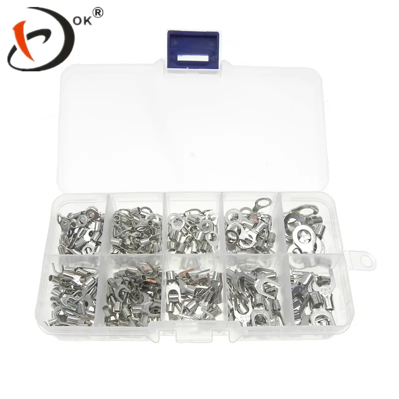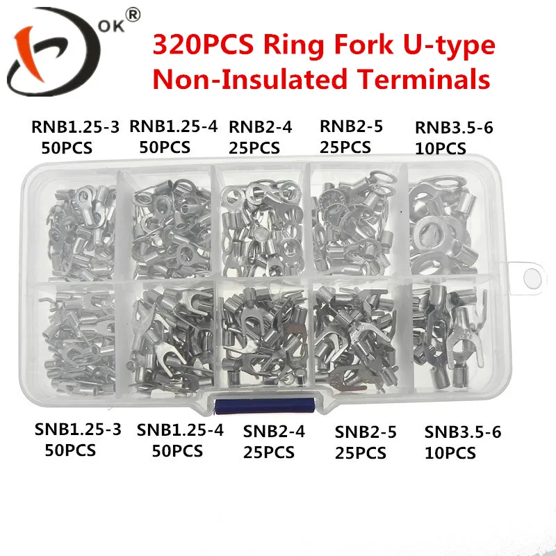 320pcs/box 10 kinds Non-Insulated Fork U-type Set Terminals Connectors Assortment Kit Electrical Crimp Spade Ring