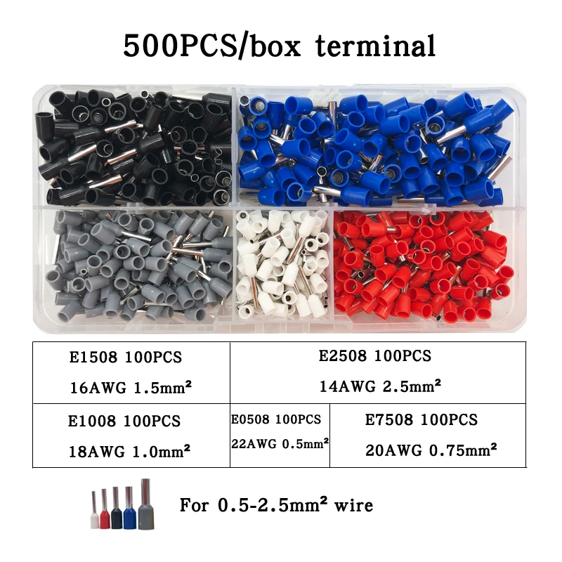 Tubular Insulated Terminal Wire Connector Box Set Electrical Crimping Tool E0508 E7508 E1008 E2508 E4009 E6012 E10-12