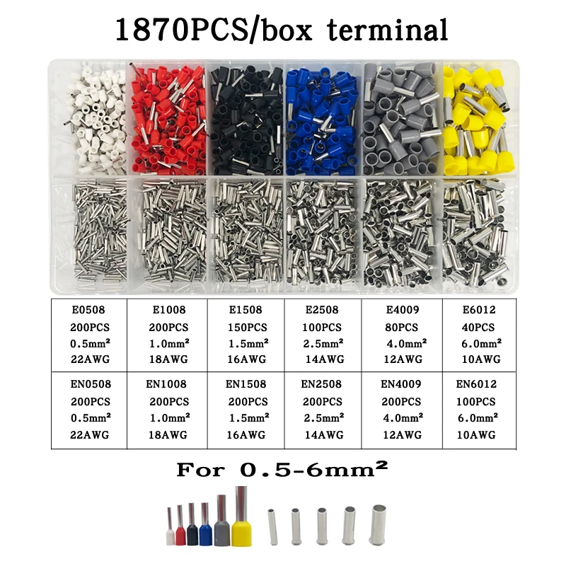 Buy Tubular Insulated Terminal Wire Connector Box Set Electrical Crimping Tool E0508 E7508 E1008 E2508 E4009 E6012 E10-12 up to 2098-12-31, and You will Save US $2.08 or 24%, Becuase You Just Pay for 6.57 not Full Price for 8.65