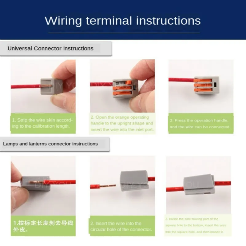 Addition Information of LED Light Wire Connector Fixed Type Push-on Terminal Block Cage Spring Universal Fast Wiring Clip Copper-aluminum Butt Plug